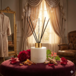 Stwórz w swoim domu atmosferę wiecznej wiosny i romantyzmu. Nasz dyfuzor „Paradise” w eleganckim, białym szkle ze złotym akcentem to luksusowy bukiet najpiękniejszych kwiatów, który otuli Twoje wnętrze, dokładnie jak na tym bajecznym zdjęciu.